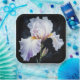 Eine atemberaubende Iris-Blume mit zarten lila und weißen Blütenblättern wird vor einem dunklen Hintergrund schön hervorgehoben