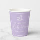 Diese personalisierte hübsche, pastellfarbene lila Baby Duschpapiertasse zeichnet sich durch eine elegante, weiße Typografie unter einem niedlichen Rockpferd aus. Moderne, einfache Skriptdekoration für eine Babydusche.