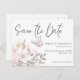 Pastel Magnolias Butterfly Hochzeit retten das Datum. Lass deinen Gästen, dass du den Knoten lange im Voraus bindest, damit sie den Tag frei behalten werden können, indem du ihnen eine bequeme Postkarte in der Post gibst. Dieses stilvolle Design hat sich in einer stilvollen Schriftzypografie Save the Date und die Erholung des Serifentextes ist leicht mit Ihren eigenen Details personalisiert. Weiche pastellfarbene Aquarellblumen sind in der unteren links Ecke und ein rosa Schmetterlingsmotiv. Um Ihre Gastnamen und -adressen zeithandschriftlich retten, sollten Sie auch unsere individuellen Gästennamen und Adressticker für Ihre Hochzeitsmailings in Betracht ziehen, die in dieser Sammlung verfügbar sind.