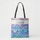 Dieser mehrfarbige Totbeutel ist beidseitig personalisiert und sieht aus wie eine wunderschöne, pastellfarbene Meerjungwaage. Großartiges Geschenk. Ideal für Wasserliebhaber, Schwimmer, Strandbesucher, Schwimmer oder alle, die Meerjungfrauen Lieben haben. Großartiges Geschenk.