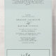 Diese Einladung besticht durch eine pastellfarbene Minzkulisse und einen modernen Script-Schriftart, der minimalistische Eleganz ausstrahlt. Das klare und leicht lesbare Design sorgt dafür, dass Ihre Gäste alle notwendigen Informationen für Ihre Hochzeitsfeier erhalten. Mehr als nur eine Einladung, dieses vielseitige Design ermöglicht es Ihnen, die Details für Ihre Zeremonie, Ihren Empfang, Ihre UAWG und alle weiteren Informationen, die Sie teilen möchten, zu personalisieren. Mit seinem zeitlosen Stil und seiner weichen Farbe ergänzt diese Einladung perfekt eine Vielzahl von Hochzeitsthemen, von romantisch und elegant bis modern und raffiniert.