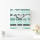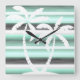 Pastel Mint Green Grau Wasserfarbe Muster Streifen Quadratische Wanduhr