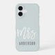 Nach der Hochzeit, zeigen Sie Ihren neuen Nachnamen mit diesem eleganten und stilvollen Gehäuse - perfekt für die Flitterwochen! Personalisierte Brautkonstruktionen "Mrs. [lastname]" in modernem Weiß und Grau Typografie auf subtilem pastellfarbenem Minzgrün. Verwenden Sie das Feld, um Ihren neuen Nachnamen zu personalisieren.