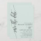 Diese pastellfarbene Minze-Save the Date-Karte verfügt über einen modernen Script-Schriftart, der eine Touch zeitloser Eleganz verleiht. Das minimalistische Design behalte den Fokus auf Ihre Namen und Ihr Hochzeitstermin, was eine klare und stilvolle Aussage macht. Diese Karte ist perfekt für jede Jahreszeit und ergänzt eine Vielzahl von Hochzeitsthemen, von romantisch und elegant bis modern und raffiniert. Personalisieren Sie es mit Ihren Namen und Hochzeitsdatum für einen rett-the-Date, der Ihren einzigartigen Stil widerspiegelt.