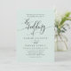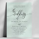 Laden Sie Liebhaber ein, um Ihren besonderen Tag mit dieser eleganten Pastell Minze Hochzeitseinladung zu feiern. Mit einem minimalistischen Design mit moderner Schrift und zarter Typografie Set diese Einladung den Ton für ein anspruchsvolles und unvergessliches Ereignis. Die sanfte Farbe und die klaren Linien verleihen der Touch Anmut und Schlichtheit und machen sie zu einem idealen Ort für eine stilvolle Hochzeitsfeier. Passen Sie die Details an, um eine einzigartige und schöne Einladung für Ihren Hochzeitstag zu schaffen.