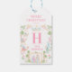 This Christmas gift tag features a nativity image of baby Jesus sleeping in a manger with Mary and Joseph in the center surrounded by a the wise men and two angels. In the center you can add your initial and a name.