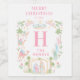 This Christmas wine label features a nativity image of baby Jesus sleeping in a manger with Mary and Joseph in the center surrounded by a the wise men and two angels. In the center you can add your initial and a name.