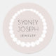 Brand deine Schmuckdesignerei mit diesen eleganten, gedämpften Cameo-Blush-Aufklebern, die eine Perlen- oder Perlketten-Illustration in Weiß mit deinem Namen oder Firmennamen in modernem Holzkohle-Grau-Schriftsatz enthalten.