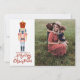 Diese Nutcracker Weihnachtskarte ist eine Erinnerung vergangener Tage mit einer modernen Drehung. Das Design ist mit einem rosa und roten Weihnachtsknacker im Ofen auf weißem Hintergrund gestaltet. Es heißt "Frohe Weihnachten wünschen" mit einem Ort, um Ihr Lieblingsessen Foto hinzuzufügen. Auf der Rückseite ist ein anderes Ornament mit einer Nachricht, dass Sie personalisieren und hinzufügen können Ihre Namen.