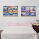Dieses Design-Set im Küstenbereich zeigt zwei verschiedene Leuchtturmszenen, die die sich ständig verändernde Schönheit der Atlantikküste erfassen. Ein Stück zeigt einen traumhaften Sonnenuntergang hinter dem berühmten Leuchtturm von Cape Hatteras, der in sanften Aquarelltönen aus Lavendel, Blüte und Cerulean gestrichen ist und sanft rollende Wellen das warme Licht der Dämmerung reflektieren. Die zweite kontrastiert mit einer intensiven Meereslandschaft, wo dramatische Wolken über abstürzende Wellen und goldene Lichtfilter durch den Sturm brennen. Zusammen bieten diese beiden Visuals eine atemberaubende Gegenüberstellung - Ruhe versus Tempel - und sind somit ideal für die Darstellung nebeneinander. Ideal für alle, die in Meereslandschaften, romantischen Himmel oder nautische Nostalgie gezeichnet werden, erinnert dieses Set an den Zeitablauf und die anhaltende Kraft der Küstenentronne. Ob in einem Strandbereich gestylt oder als Brennpunkt in einem launischen Interieur genutzt, diese Stücke vermitteln sowohl Emotion als auch Bewegung. AI generierte Kunstwerke.