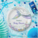 Inspired by shimmering sea glass and soft coastal tides, this mermaid design blends pastel aqua, lilac, and hints of golden sparkle. The flowing tail and delicate seaside florals create an enchanting underwater atmosphere that feels elegant yet playful — perfect for celebrating your sweet little mermaid.