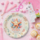 This pastel baby shower paper plate features a smiling starfish with seaweed, shells and coral on a soft vintage cream background. The playful ocean design makes it a perfect personalized table detail.