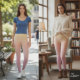 Pastel Ombre Vertical Plaid Gradient Texture Leggings