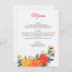 Pastel Orange Yellow Spring Dahlia Blume Hochzeit Menükarte