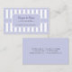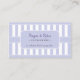 Eine Visitenkarte, die Bilder eines französischen Bistros oder einer Pâtisserie erinnert. Ideal für einen Bakeshop, eine Boutique, ein Café oder ein Einkaufszentrum. Pastel lila vertikale Balken versetzen die Kontrollleiste, in der Ihre persönlichen Informationen gespeichert sind. Fügen Sie Ihre vollständigen Kontaktinformationen auf der Rückseite ein. Erhältlich in alternativen Farben mit passenden Produkten.