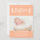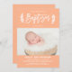 Pastel Peach Laurel Wreath Baby Foto Taufe Einladung