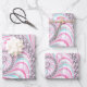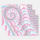 Dieses wunderschöne Verpackungspapier zeichnet sich durch ein abstraktes, spiralförmig geschliffenes Fraktal-Bonbons in pastellblau, rosa und weiß aus.