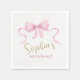 Pastel Pink Bow & Elegante Gold Script Geburtstag Serviette