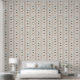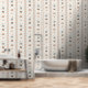 A whimsical gender neutral circus-themed wallpaper with stripes, tents, balloons, and playful shapes, brought together in a warm, modern color palette designed for nurseries and kids bedroom.