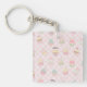 Personalize your keys or bags with this charming keychain featuring an adorable food illustration. The design displays a concentrated view of the cute bakery treats seamless tile graphic with whimsical frosting set on a pastel pink gingham background. This small accessory is perfect for showcasing a sweet dessert pattern, making your keys easy to find while adding a touch of repeating sweethearts custom party decor flair to your everyday carry.
