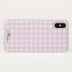 Das Gingham Design ist pastellrosa. Personalisieren mit einem Namen.