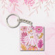 Pastel Pink Halloween Ghost with Flowers and Pumpk Schlüsselanhänger