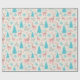 Pastel Pink Rentier Blaue Pine Tree Schneeflocken Geschenkpapier