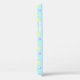 Es handelt sich um ein hübsches Muster verschiedener Größen, die rosa, gelb und lavendelfarbene Polka-Punkte auf hellblauem Hintergrund aufweisen.