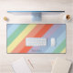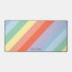 Eine Schreibtischmatte mit diagonal pastellfarbenen Regenbogenstreifen und einem anpassbaren Vornamen (den Sie leer verlassen können, wenn Sie es bevorzugen): Eine nette Geschenkidee für einen Freund oder einfach nur, um im Büro Farben hinzuzufügen!