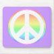 Rosa pastellfarbener Regenbogen in sanften Farben auf einem Friedensschild.