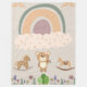 Create a tender moment with this dreamy nursery illustration featuring a pastel rainbow, fluffy cloud, cuddly teddy bear, two classic rocking horses, blooming flowers, and whimsical trees. Ideal for baby memory books, nursery wall art, or planner pages. Soft colors and gentle themes make it perfect for newborns and toddlers.