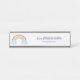 Eine Schreibtischtafel mit pastellfarbener Regenbogenillustrierung und zwei blauen Wolken mit Mitarbeitername und Job oder Service. Diese Typenschilder bringen farbige Touch in die Schule oder ins Büro!