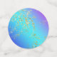 Sehr elegante Tischkonfetti, geeignet für fast jeden Anlass, mit einem blauen, lila und aqua pastellfarbenen Regenbogen, mit goldenen Sternen des Glitzer verstreut darüber.