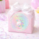 This sticker has an enchanted unicorn with a flowing multicolor mane on a soft watercolor rainbow wash with sparkle accents and customizable text. This whimsical fantasy design creates a magical look for a girl’s birthday celebration.