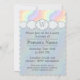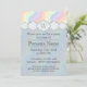Diese Einladung enthält Linien rollender Wellen, die ein einfaches und lustiges Muster in einem Regenbogen pastellfarbener Farben bilden, von Rosa bis Lavendel, überlagert durch eine halbtransparente Regenschicht unter einem Set flauschiger grauer Wolken. Die mittlere Wolke hält ein Monogramm-Set über dem Regenbereich auf dem unteren Kartenbereich, wo Sie Beispieltext finden, der angepasst werden kann, um eine personalisierte Einladung für Ihre Veranstaltung zu erstellen.