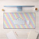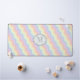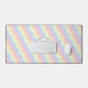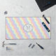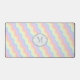 Die Linien rollender Wellen bilden ein einfaches und unterhaltsames Muster in einem Regenbogen pastellfarbener Farben von Rosa bis Lavendel und schaffen so ein niedliches Federmuster. Passen Sie das Monogramm im Kreis mit Ihrer Initiale an, um eine einzigartige Schreibtischmatte für Ihre Arbeit oder Ihren Spielraum zu erstellen.