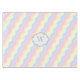Die Linien rollender Wellen bilden ein einfaches und unterhaltsames Muster in einem Regenbogen pastellfarbener Farben von Rosa bis Lavendel und schaffen so ein niedliches Federmuster. Passen Sie das Monogramm in der Cloud mit Ihrem Initial an, um eine lustige, personalisierte Dekoration für Ihren Tisch zu machen.