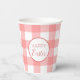 Pastel Raspberry Red Happy Oaster Kariertes Muster Pappbecher