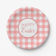 Pastel Raspberry Red Happy Oaster Kariertes Muster Pappteller