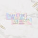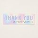 Moderne pastellfarbene Regenbogen bedanken sich für Ihren Einkauf Mini-Einsteckkarte mit lila Text "Danke". Fügen Sie auf der Rückseite Ihr eigenes Logo hinzu. Mit dem Designwerkzeug können Sie Schriftart und Schriftart ändern, Elemente verschieben und verändern.
