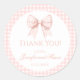 Erleben Sie Freude mit diesen reizvollen Rundaufklebern, die sich ideal für die Wertschätzung Ihrer Vintag inspiriert Babydusche eignen. Diese Aufkleber sind mit einem bezaubernden Bugband vor dem Hintergrund eines weichen pastellrosa Gingham dekoriert und verleihen Ihren Dankesbotschaften einen zusätzlichen Charme.