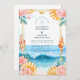 Set the tone for a dreamy seaside celebration with this pastel coastal design, featuring watercolor shells, soft pink florals, golden hanging details, and serene ocean waves. The gentle nautical palette gives this piece an elegant, sunlit, beach-romance feeling while keeping the focus on your event details. Perfect for couples planning an oceanfront ceremony, coastal destination, or summer wedding by the water.