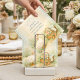 Ein charmantes, märchenbuchartiges Design für eine Babyparty mit einer süßen, aquarellierten Gans, die neben einem Nest mit pastellfarbenen Eiern steht. Zarte Frühlingsblumen und sanftes Grün schaffen eine idyllische ländliche Szene, während eine rosafarbene Schleife und ein Hintergrund mit Salbei-Gingham einen gemütlichen Cottagecore-Touch hinzufügen. Der vintage Illustrationsstil und die weiche Pastellpalette geben diesem Design ein zauberhaftes Kinderzimmer-Feeling, perfekt für eine spielerische und herzliche Babyparty.