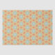 Das Muster weist ein symmetrisches, sich wiederholendes Design mit einem Vintagen Gefühl auf. Es besteht aus drei Hauptfarben: Korallen, Hellgrün und hellgelb. Die Korallenformen ähneln Blütenblättern oder abgerundeten Diamanten, was einen sternähnlichen Effekt erzeugt, wo sie sich überschneiden. Die minzgrünen Formen bilden sternähnliche Muster in der Mitte und zwischen den Korallenformen. Das blassgelbe Ganze füllt den Hintergrund, wodurch ein sanfter Kontrast zu den anderen Farben entsteht. Die Gesamtwirkung ist ein harmonisches und auffälliges geometrisches Muster mit Retro-Ästhetik.