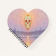 Ein traumhaftes Notizbuch mit einem Zuckerschädel, der über sanften Pastellenhäuschen und Wasser strahlt.