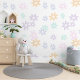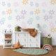 Dieses Design präsentiert ein zauberhaftes, modernes Blumenmuster in den Farbtönen Minzgrün, Pastellrosa, helles violettes, blassblaues und weiches Maisgelb-Set vor weißem Hintergrund. Das elegante und stilvolle Design verkörpert einen charmanten botanischen Geist, der sich perfekt für Künstler, Dekorateure, Trendsetter und diejenigen eignet, die eine Mischung aus Vintagem Retro und eleganten romantischen Themen schätzen. Dieses elegante und dekorative feminine Muster ist vielseitig einsetzbar und steht für eine Vielzahl von Gegenständen der modernen Wohngestaltung zur Verfügung, was es ideal macht, das Ambiente von Räumen wie einem Master- oder Kinderzimmer oder einem Kinderzimmer zu verbessern.