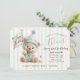 Celebrate a little one's milestone with this charming birthday invitation featuring a pastel-striped background, gold star accents, and an adorable teddy bear in party attire. Whimsical and warm, this design sets the tone for a joyful first birthday celebration filled with games, treats, and festive cheer.
