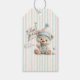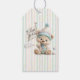 Celebrate a little one's milestone with these charming birthday Gift Tag. featuring a pastel-striped background, gold star accents, and an adorable teddy bear in party attire. Whimsical and warm, this design sets the tone for a joyful first birthday celebration filled with games, treats, and festive cheer.