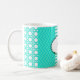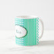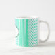 Niedliches Dekor mit fünf verschiedenen Mustern in türkisfarbenen Tönen. Sie können das Design der Tasse personalisieren, indem Sie den Text im angegebenen Feld ändern. Sie können Stil, Größe und Farbe des Schriftartes ändern, indem Sie die Schaltfläche Anpassen verwenden.