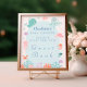 Sogar die Meereslebewesen melden sich an! Dieses Gästebuchzeichen mit süßen Ozeanmotiven ist der perfekte Empfang für Ihre Babydusche. Mit Pastellwalen, Quallen und freundlichen Tintenfischen verleiht es dem Gast einen ganz besonderen Charme und verlasst seine Liebe.